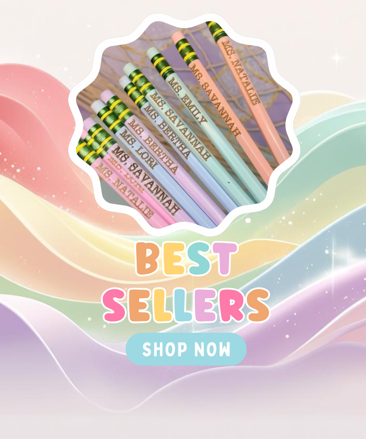 Pastel engraved teacher pencils